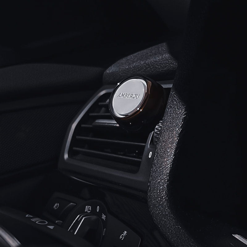 HARUKADO Amberju Clip - Einen Raum zum Entspannen direkt im Innenraum deines Fahrzeugs dank natürlich vorkommenden Deodorant-Bestandteilen gewonnen aus Bäumen und grünem Tee. Die warmen Farben und Texturen der Materialien schaffen ein freundliches und ein einladendes Design.