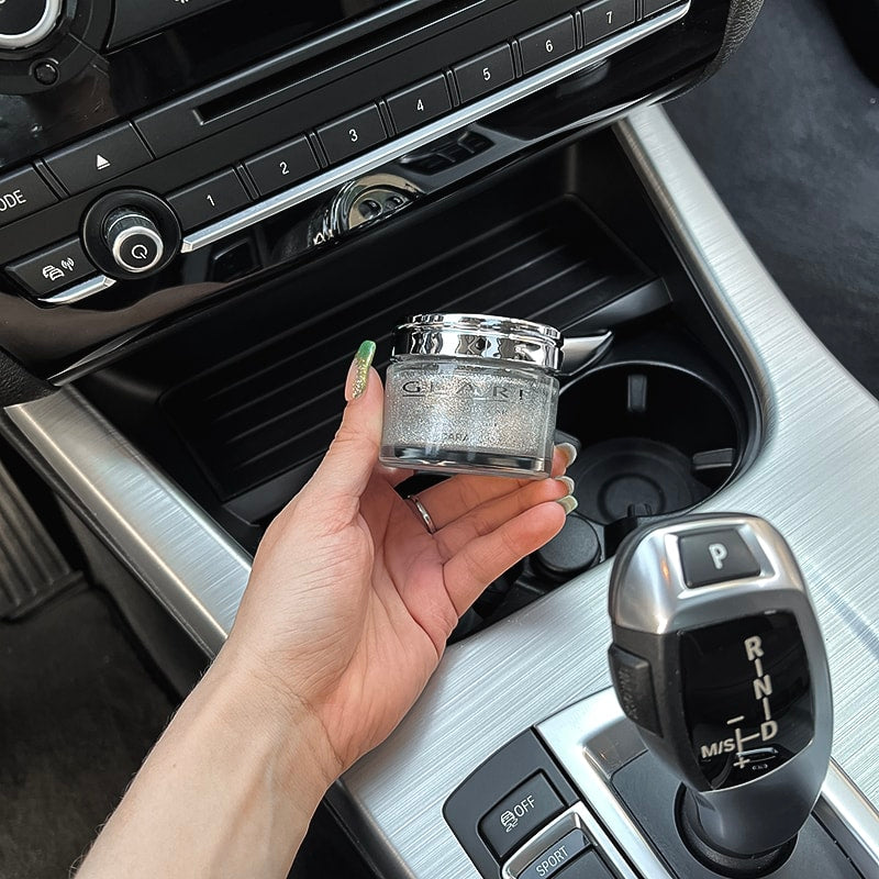 Ein neues unvergleichliches Dufterlebnis, geschlossen in einem edlen Tiegel aus Glas begeistert mit seinem dezenten, aber dennoch ausdrucksstarken Duft und sorgt für einen echten Hingucker im Fahrzeuginnenraum. Das (glitzernde) Gel unterstreicht die Einzigartigkeit und der Tiegel aus Glas die Eleganz des Produktes. Die Duftintensität ist angenehm dezent, sodass einem keine penetrante Duftwolke beim Einsteigen entgegenkommt. Egal ob im Auto oder Büro, im Bad oder im Haushalt, es hinterlässt überall sein unaufdringliches Aroma. Durch die Lüftung und auch höhere Temperaturen, z.B. im Sommer, kann die Intensität des Autoparfüms etwas gesteigert werden. Die Rezeptur der Autoparfums sind das Ergebnis jahrelanger Erfahrung und ausgezeichneter Spezialisten, die bei der Herstellung der Düfte ausschließlich wertvolle Duftstoffe und hochwertige Inhaltsstoffe verwenden.